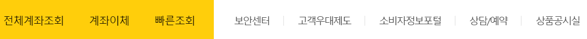 전체 계좌조회, 계좌이체, 빠른 조회가 대표적으로 많은 분들이 사용하는 것이겠죠. 그밖에도 다양한 상품에 대한 정보를 확인할 수 있습니다.