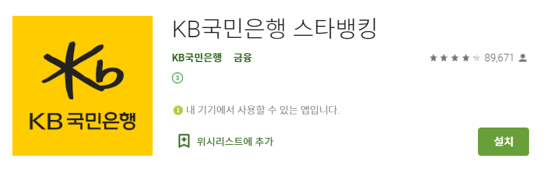 플레이스토어에 접속하신 후, 국민은행을 검색하시면 다양한 어플을 확인할 수 있습니다.