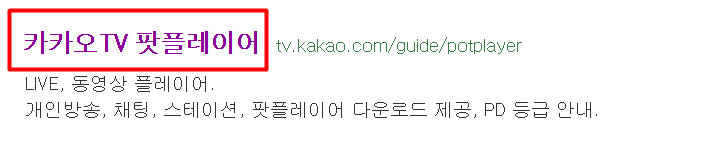 카카오tv 홈페이지를 통해서 팟플레이어를 다운받을 수 있습니다. 해당 페이지에 접속하는 방법은 다양한데, 가장 보편적인 방법으로 검색과 메뉴를 이용하는 방법이 있습니다. 검색은 관련 키워드로 다음에서 진행하시면 됩니다.