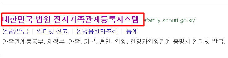 1. 우선은 사이트에 접속하도록 합니다. '가족관계 증명서'라고 입력하시면 해당 사이트를 확인할 수 있습니다.