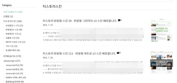 - 티스토리 메인 홈페이지 '스킨' 페이지에서 찾기