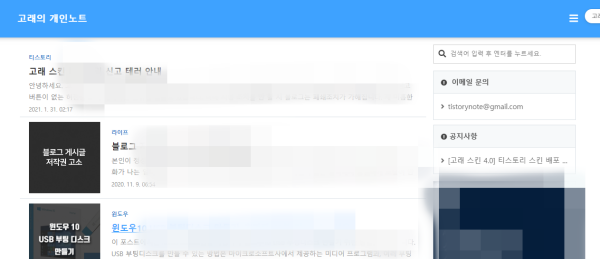 여기서는 그런 능력자 금손을 소유하고 있는 사람들이 공유하고 있는 티스토리 스킨에 대해 살펴보도록 합니다. 개중에는 유료스킨도 있다는 점을 참고해 주세요.